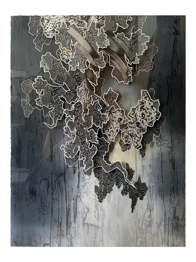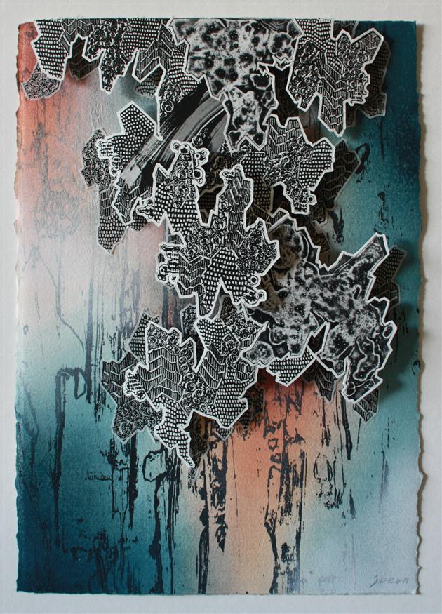 The motifs of Underwater prints series are the sea creatures from my memory. I capture parts of images in the memory and reinterpret them. I apply the characteristics of traditional Korean Paintings such as strength of stroke, white space, and the shading effect of ink on the prints. Another main component of print is layering. At first glance, my work seems like simple shapes, but a closer look reveals stories from combinations of layers.
