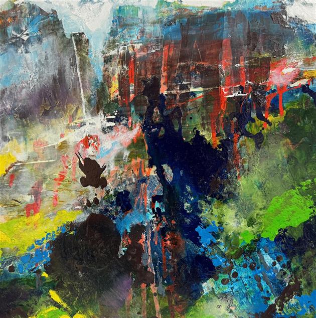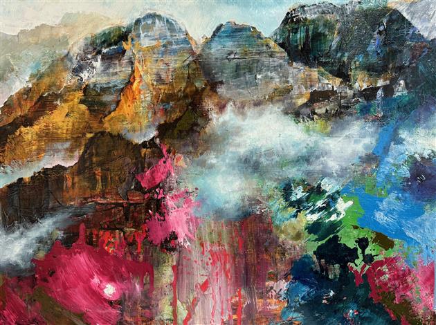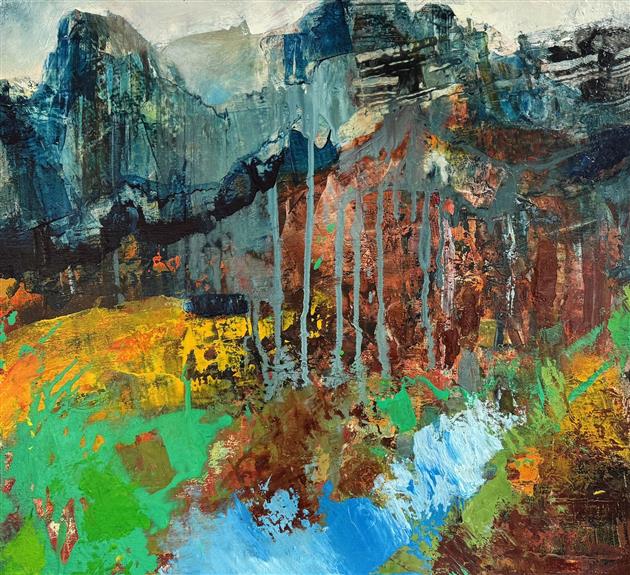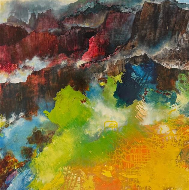 I am interested in the event of painting. The informative process which unfolds as a painting evolves, is a constant curiosity. My intention is to let go of formulations and ideologies in order to gain access to work that is inspired by, and reflecting, the aliveness of nature. Properties of paint, color, mark making, and their relationships direct me in the process; each layer of additional color and shape brings new interactions. As these relationships expand, each painting develops in its own direction. I am awed by the raw beauty, the drama, and the silence of untamed places. Since I am an inseparable part of this British Columbia landscape, these majestic mountains are a vital part of my work.