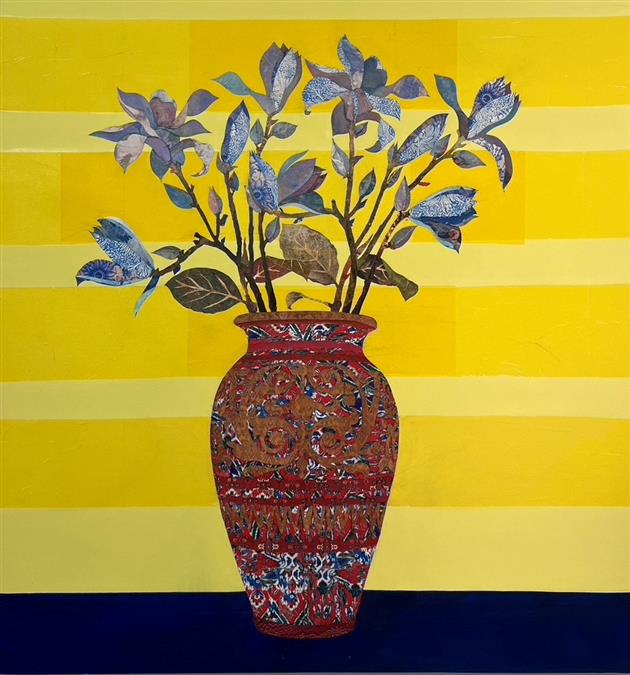 The use of overlap and collage in my paintings is directly related to the images I depict. I use the collage material to guide me to the iconography that will become the focus of the painting. I am interested in the contrasts that are set up between the collaged surfaces and the painted surfaces as well as the play between the actual shallow space and the implied deep space.